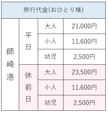 おひとり様/大人 サービス料・消費税込/1泊2食付+往復乗船券