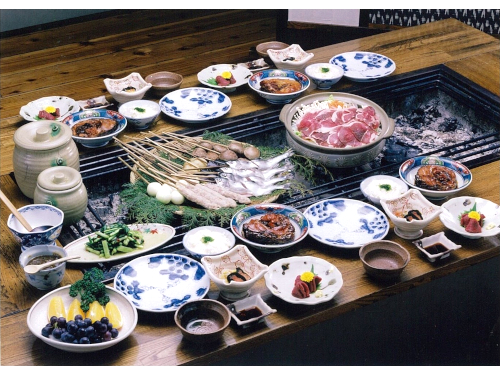 夕食は、南信州の食材を使った囲炉裏会席料理に舌鼓