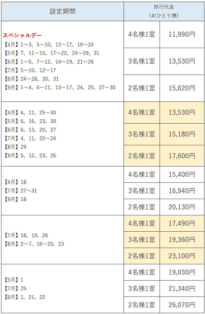 ※1室あたり、大人・小人合わせて2名様以上でお申し込み下さい。