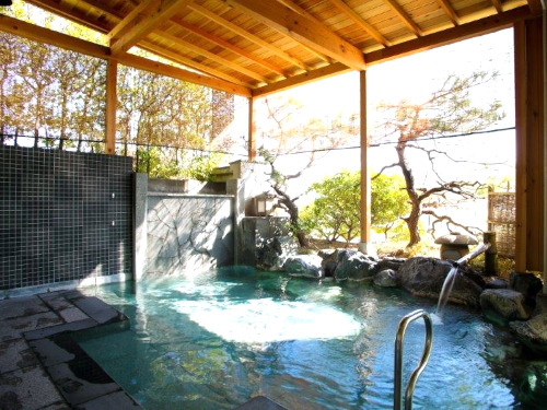 8本の源泉を持つ豊富な湯量を誇り、ホテルの大浴場、露天風呂、すべての客室まで温泉掛け流しです。