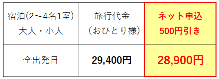 ※お日にちの近い出発日は、お申込み画面に表示されません。お電話にてお問い合わせ下さい。