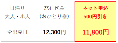 ※お日にちの近い出発日は、お申込み画面に表示されません。お電話にてお問い合わせ下さい。