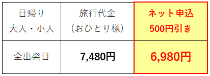 ※お日にちの近い出発日は、お申込み画面に表示されません。お電話にてお問い合わせ下さい。