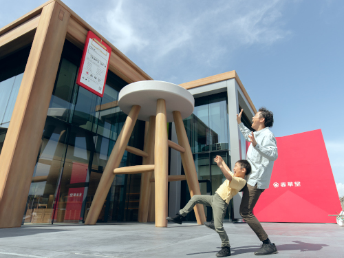 外観はダイニングテーブルや椅子、ミルクポットやコーヒーカップ、うなぎパイのショッピングバッグなど、巨大なアイテムが散りばめられ、まるでこびとの世界に紛れ込んだような気分になれます。