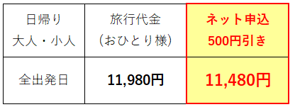 ※お日にちの近い出発日は、お申込み画面に表示されません。お電話にてお問い合わせ下さい。