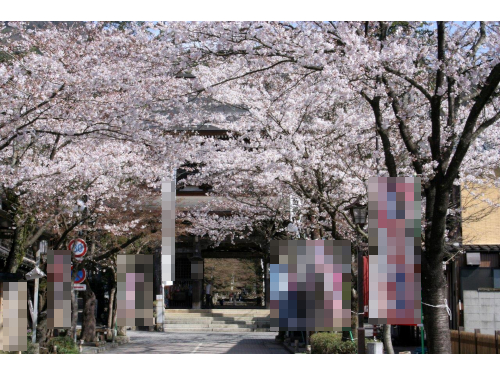◆参道沿い約1kmに約300本のソメイヨシノが咲き誇る○○山○○寺の桜のトンネルを散策