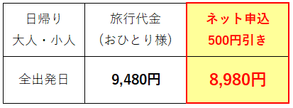 ■添乗員:全行程同行致します。(バスガイドなし)