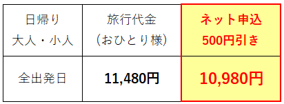 ■添乗員:全行程同行致します。(バスガイドなし)