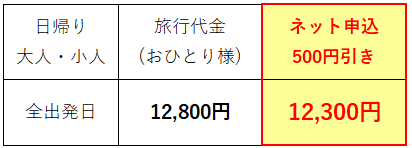 ■添乗員:全行程同行致します。(バスガイドなし)