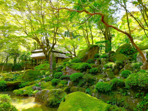 岩を苔が覆った姿はまるでフィクションの中のような美しさで、