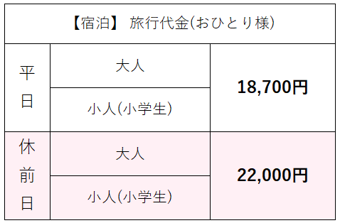 ※添い寝乳幼児:食事あり、寝具なしの場合、9,350円。