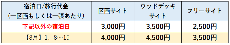 キャンプ場までの交通機関はお客様ご自身の手配・負担になります。