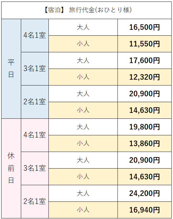 ※添い寝幼児(未就学児まで):食事なし、寝具なしの場合、2,200円。