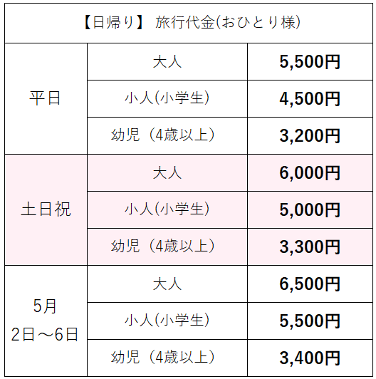 マイカー日帰りプラン