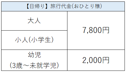 ※大人・小人合わせて2名以上でお申し込み下さい。